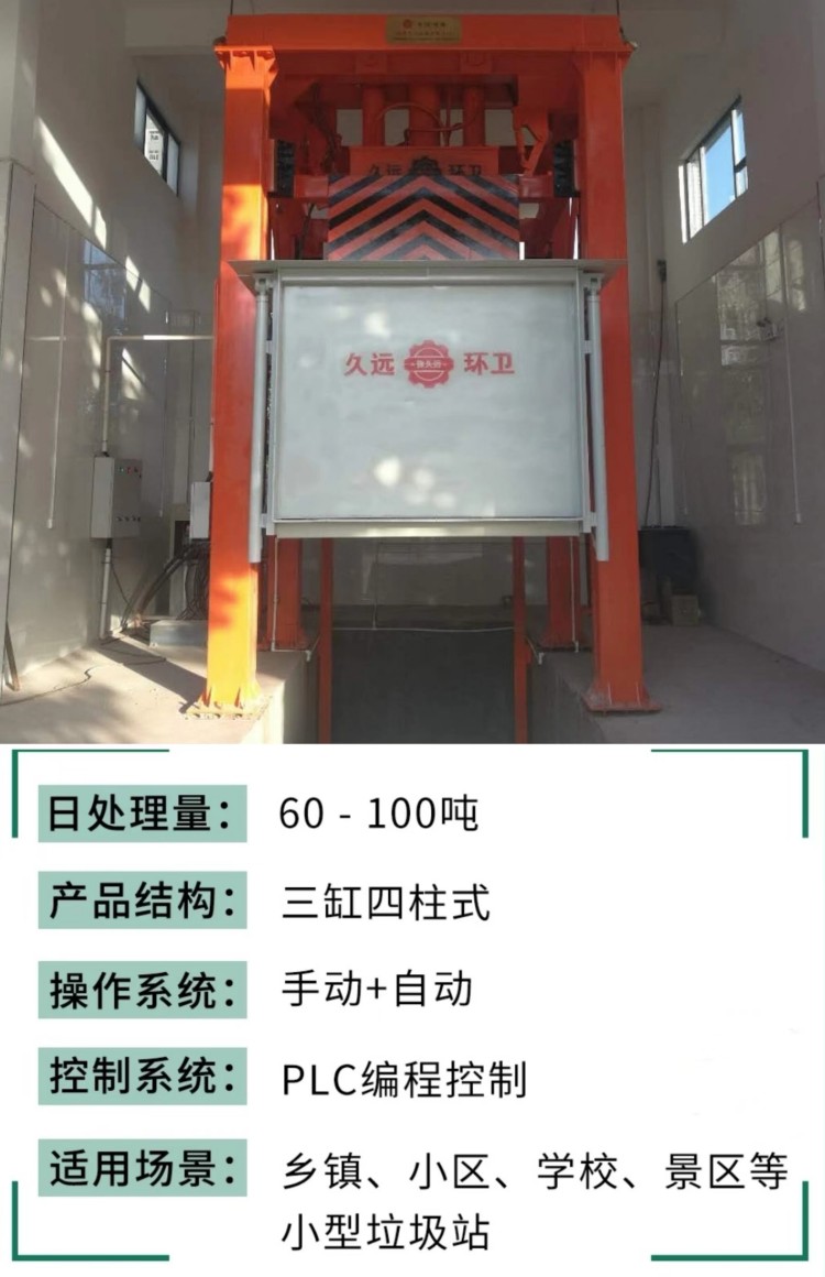 垂直式垃圾壓縮設(shè)備在原立式壓縮站的基礎(chǔ)上將單杠直壓變?yōu)槿淄瑝?,大大降低了房屋高度,科技含量高;采?2只液壓油缸控制運(yùn)行,操作更加靈活簡便,性能穩(wěn)定。該產(chǎn)品適用于城鎮(zhèn)生活垃圾的儲存、壓縮和轉(zhuǎn)運(yùn),通??稍O(shè)置在靠近街道及居民生活小區(qū)內(nèi),是當(dāng)今生活垃圾處理的理想設(shè)備。