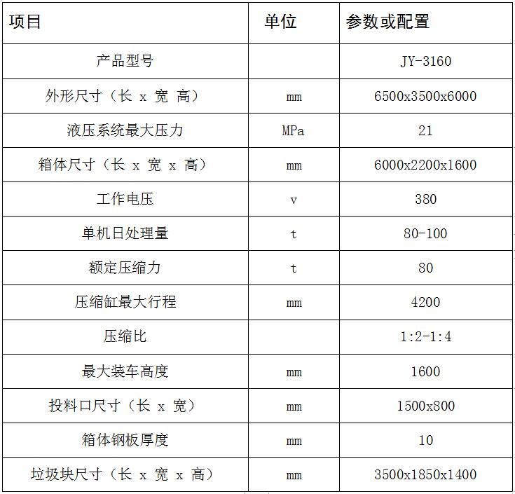 JY-3160 水平式四柱舉升垃圾壓縮設(shè)備用于對城鎮(zhèn)居民生活區(qū)、學(xué)校、醫(yī)院、公園景區(qū)、廠礦和機(jī)關(guān)單位的生活垃圾以及固體廢棄物的收集、壓縮減容和封閉轉(zhuǎn)運(yùn)。